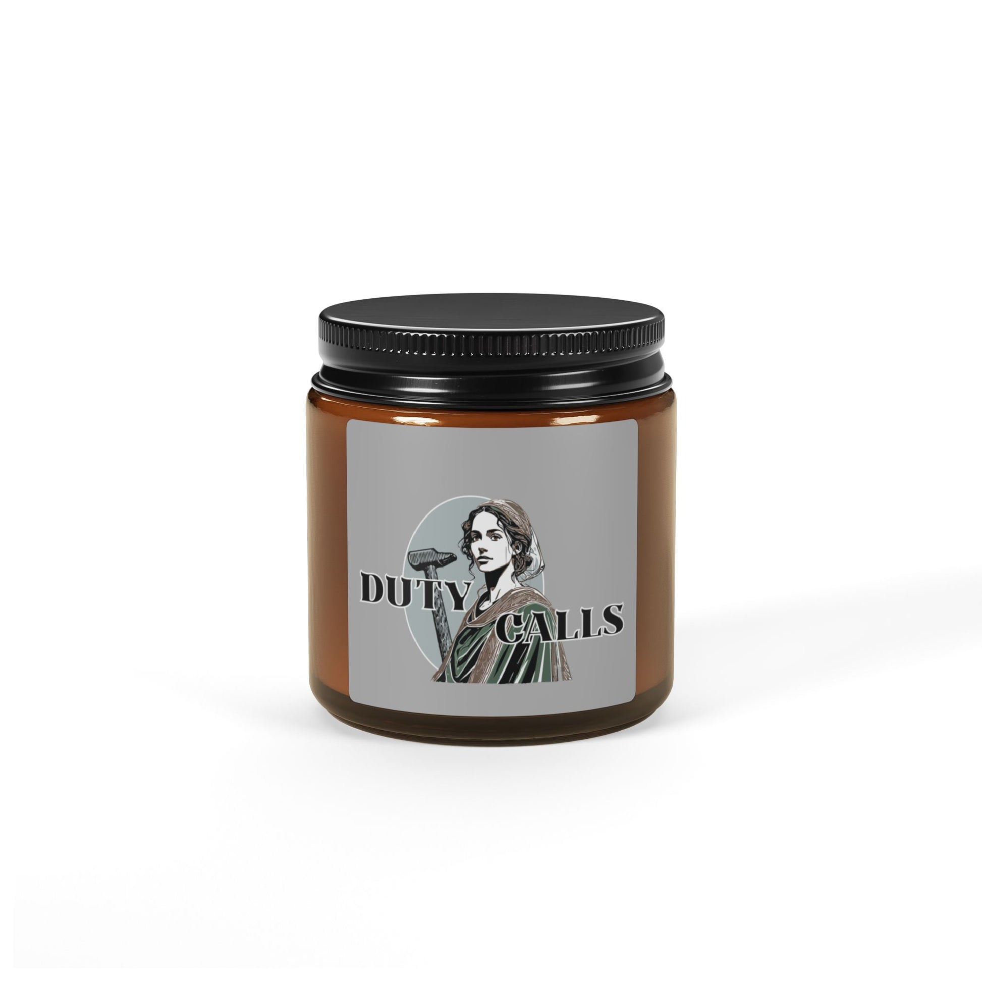 Biblical Portrait Amber Soy Candle — "Duty Calls" Scented Jar (Multi-Size)