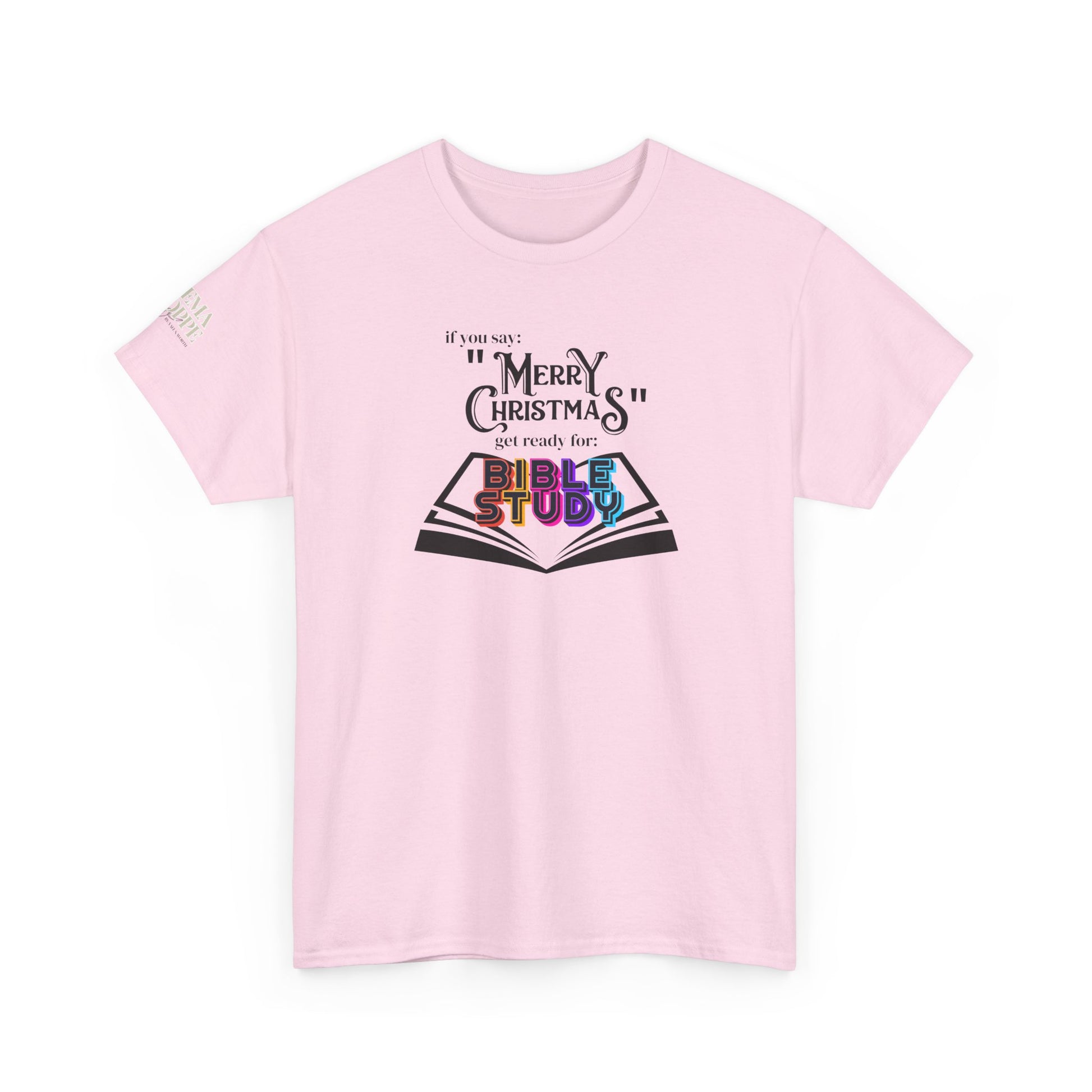 A comfortable and versatile cotton tee with an invitation to Bible Study. Perfect for casual wear or as a statement piece for any Whole Bible study enthusiast. Suitable for adults and made with high-quality materials for lasting durability.