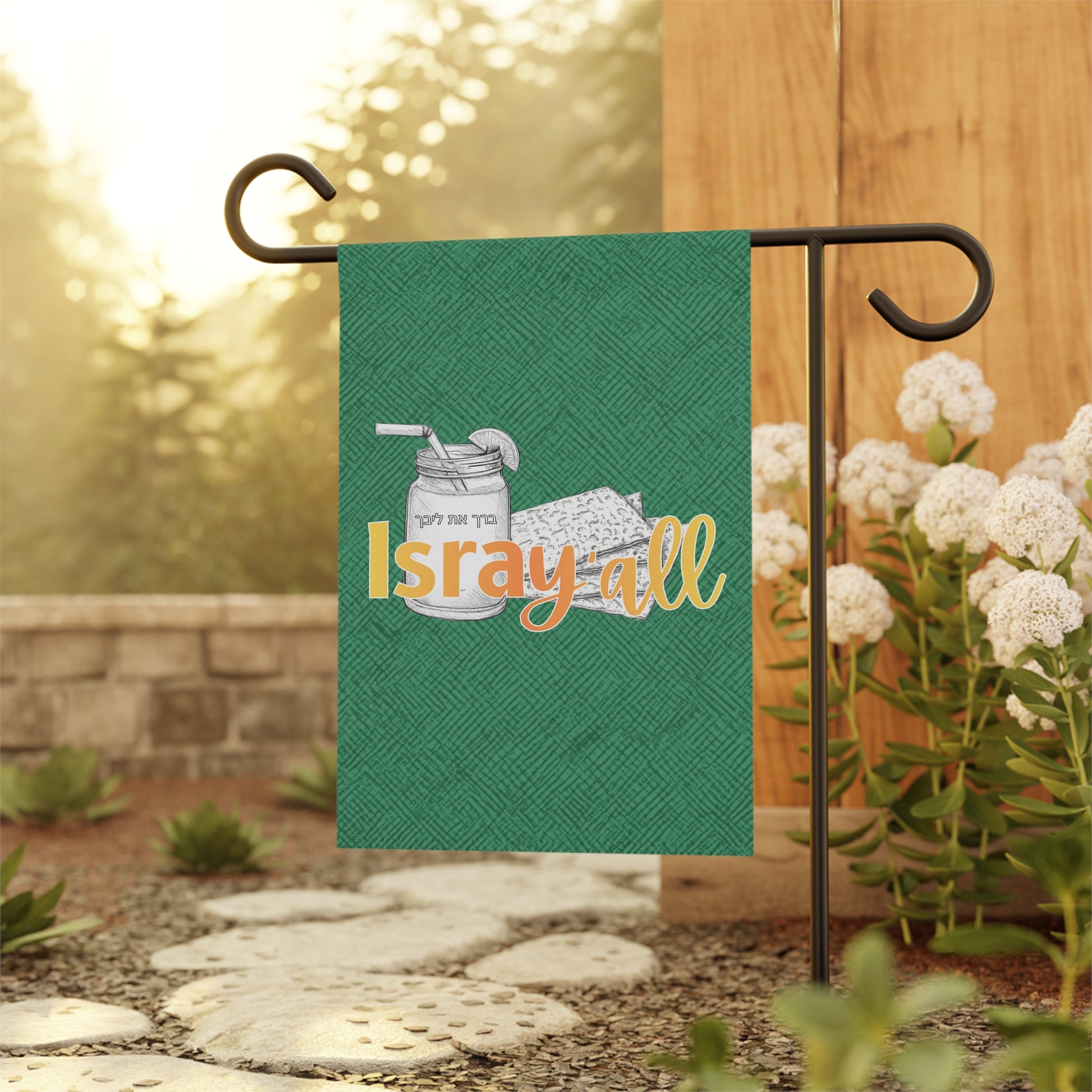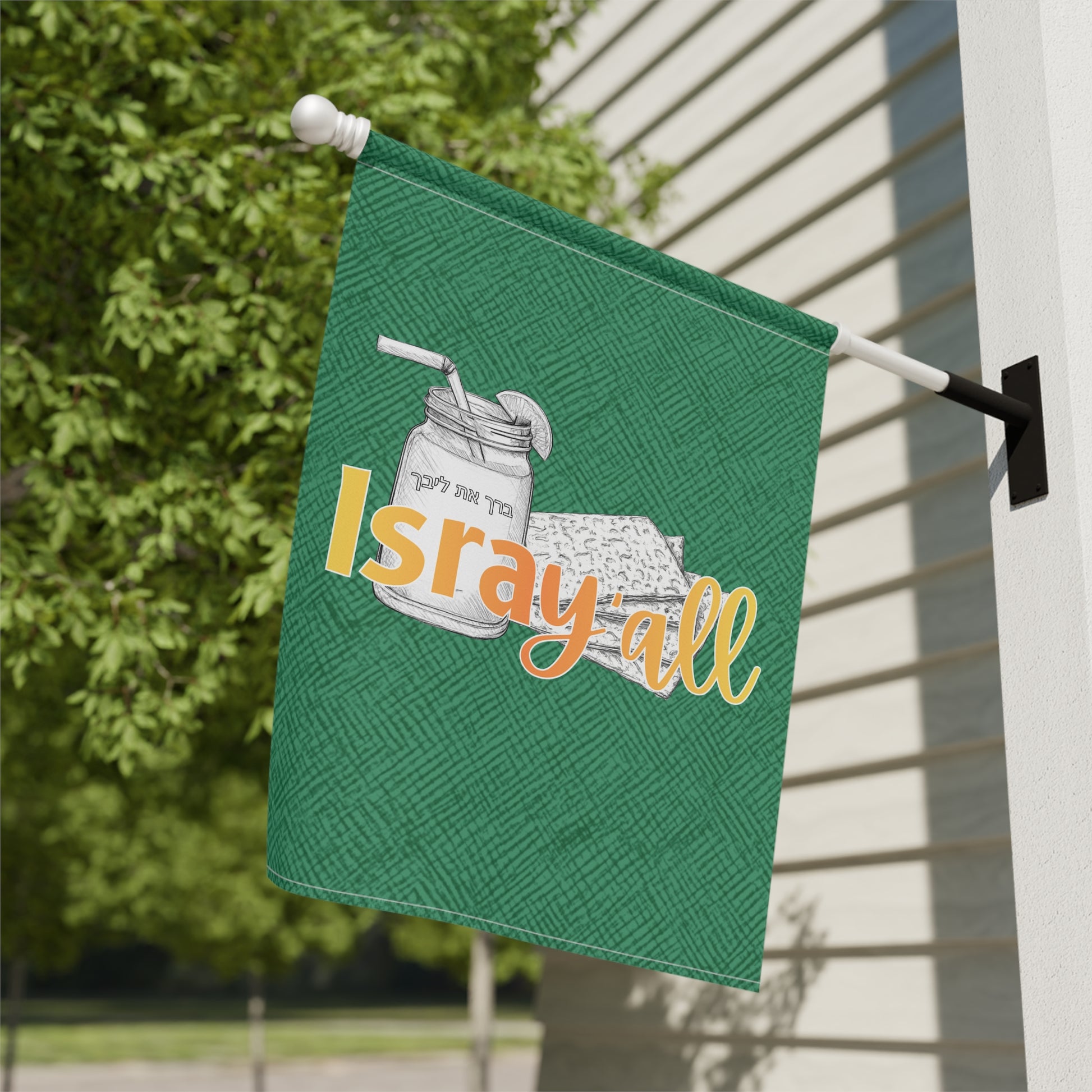 IsraY'all -All Garden Banner for Home Decor. Combo of Israel and the South. Iced teas and Matzoh bread.