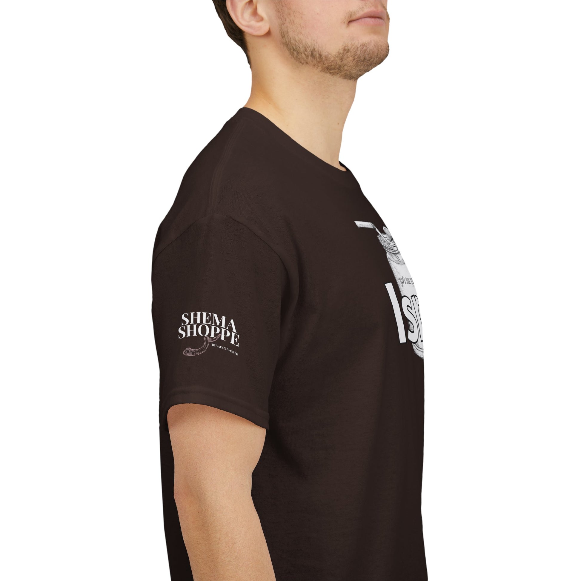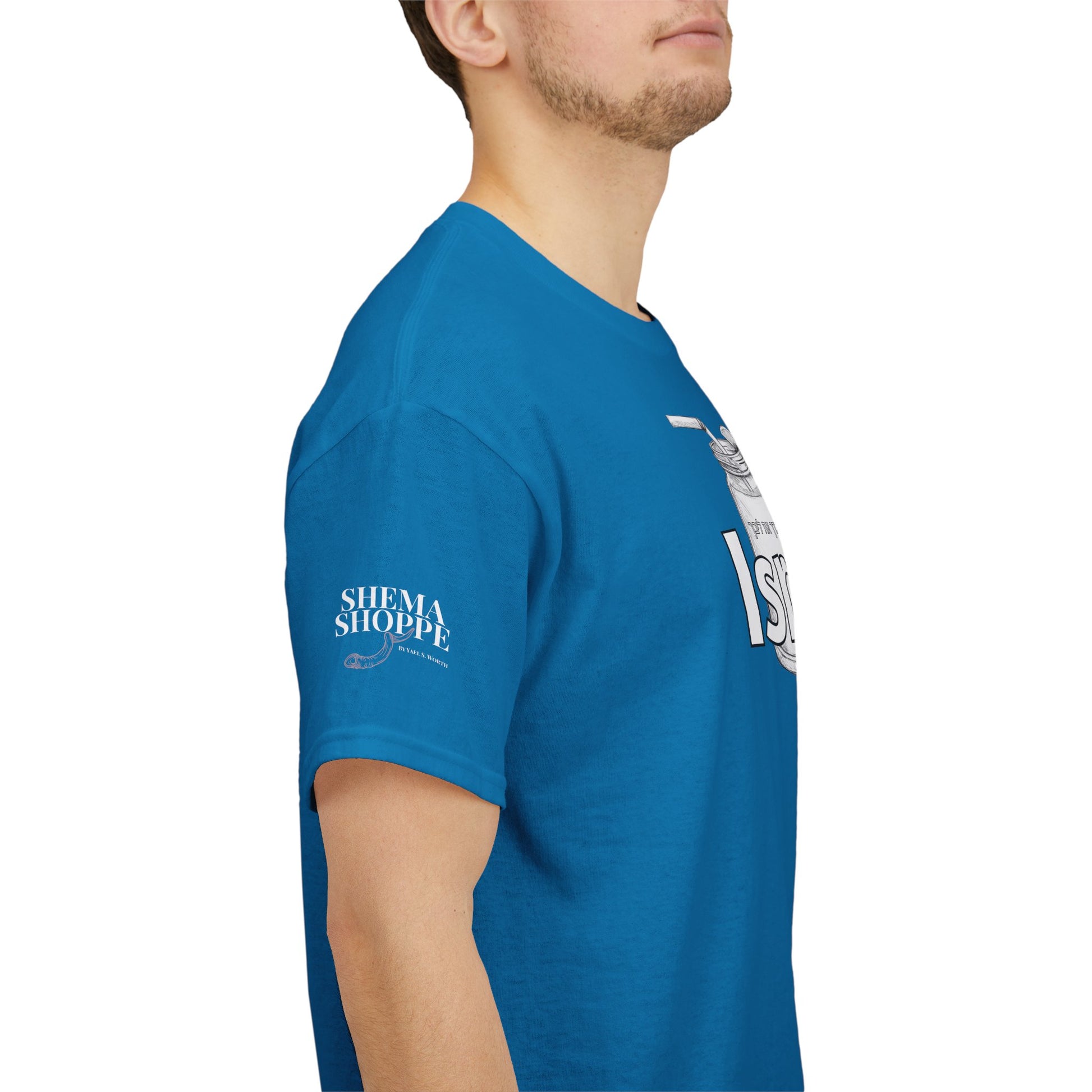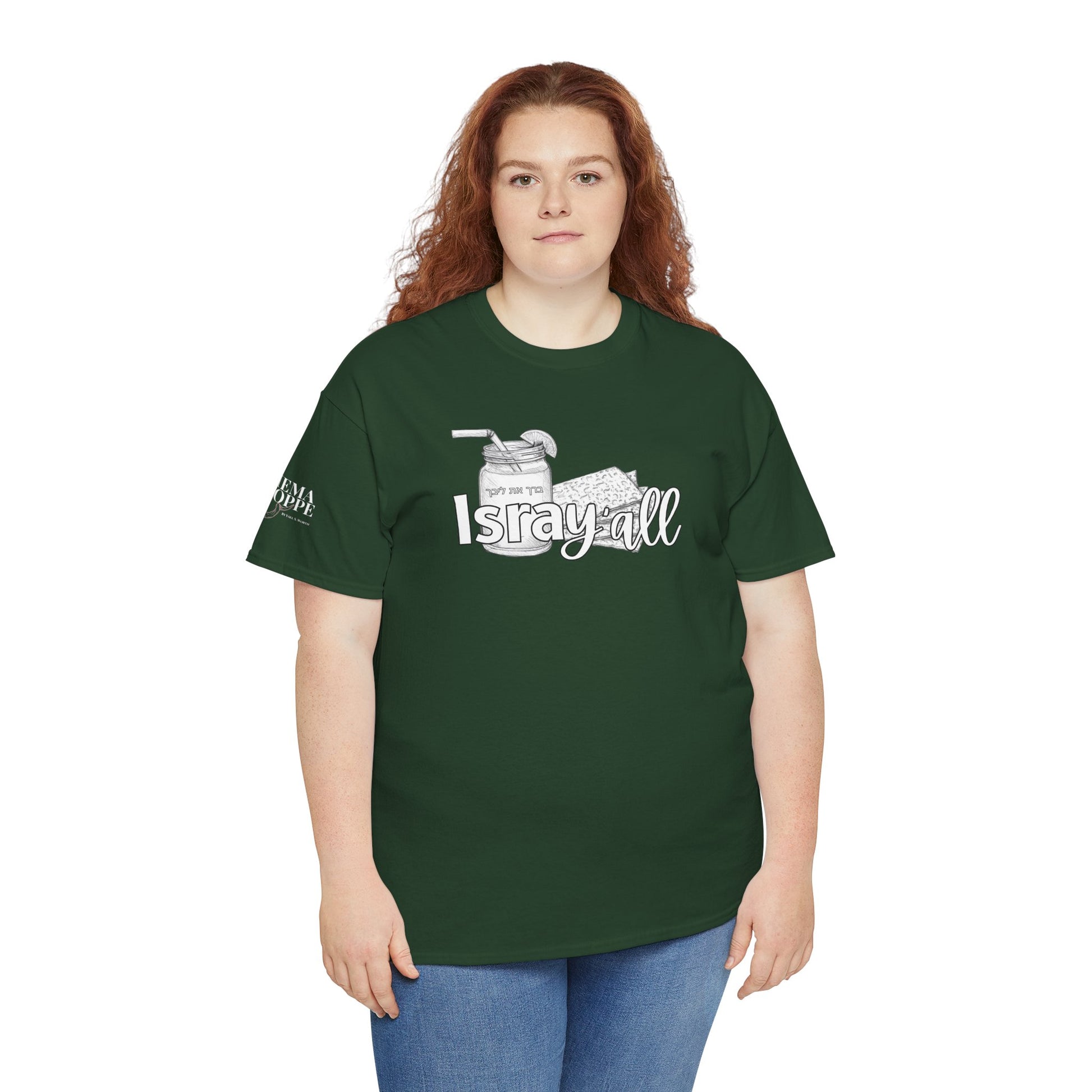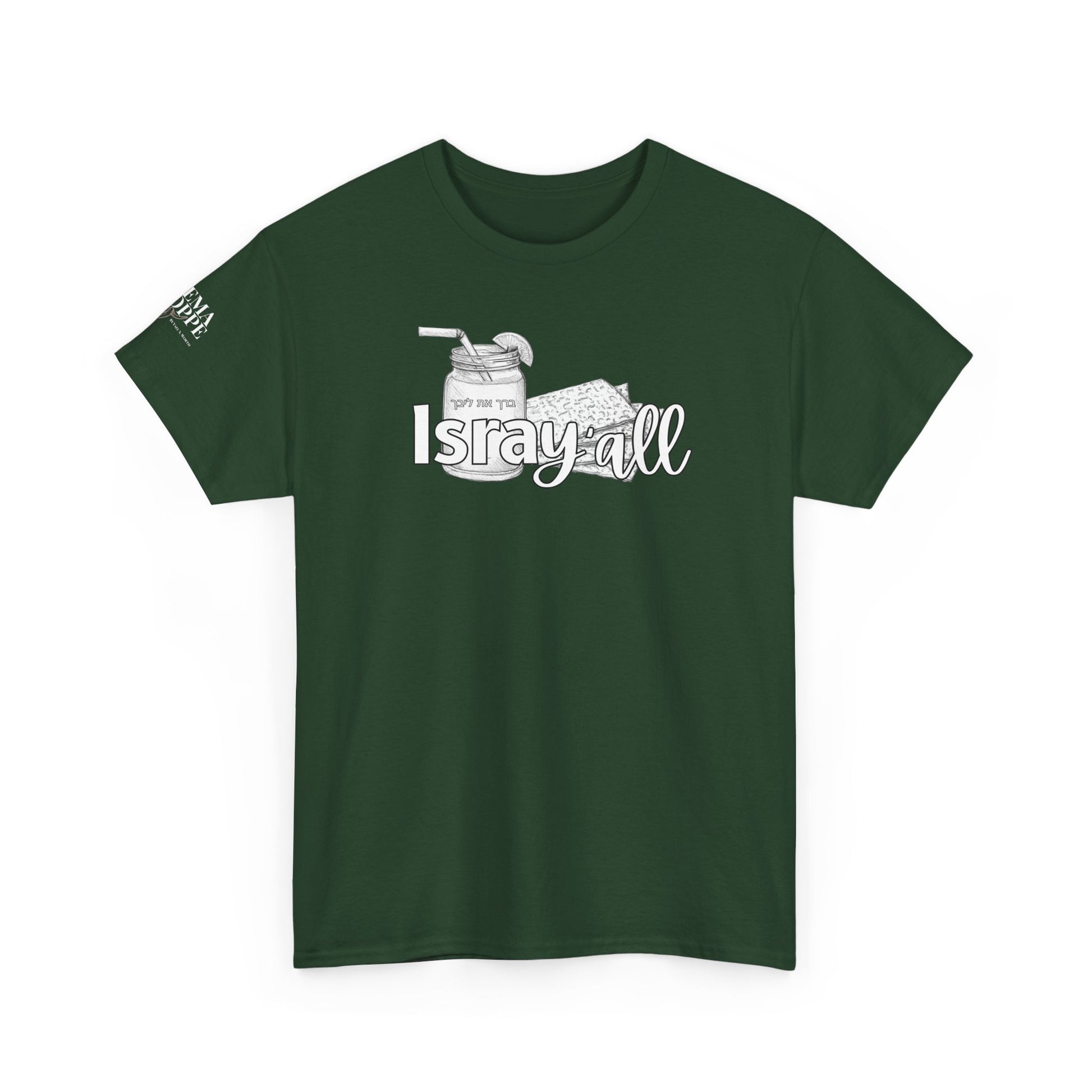 This funny IsraY'all cotton shirt combines Southern and Hebrew elements, featuring ice tea and matzo. It offers a quirky and playful vibe, perfect for those who appreciate humor and unique cultural mashups. Ideal for those looking to stand out with a conversation starter piece. Relevant for feasts like Passover, Shabbat, or casual wear with a twist.