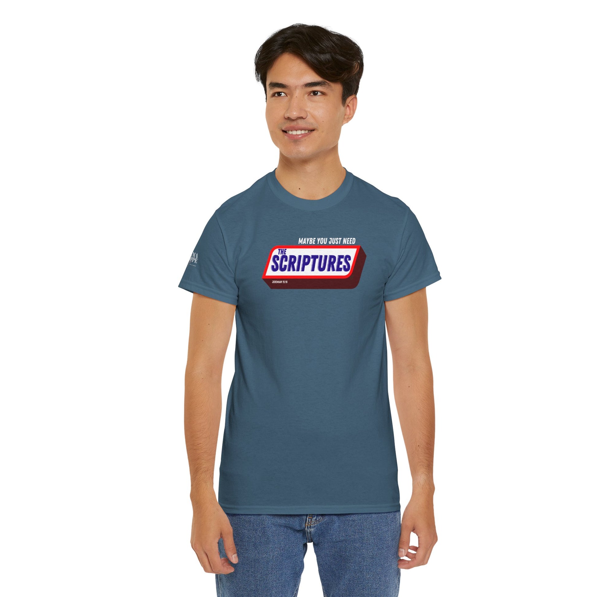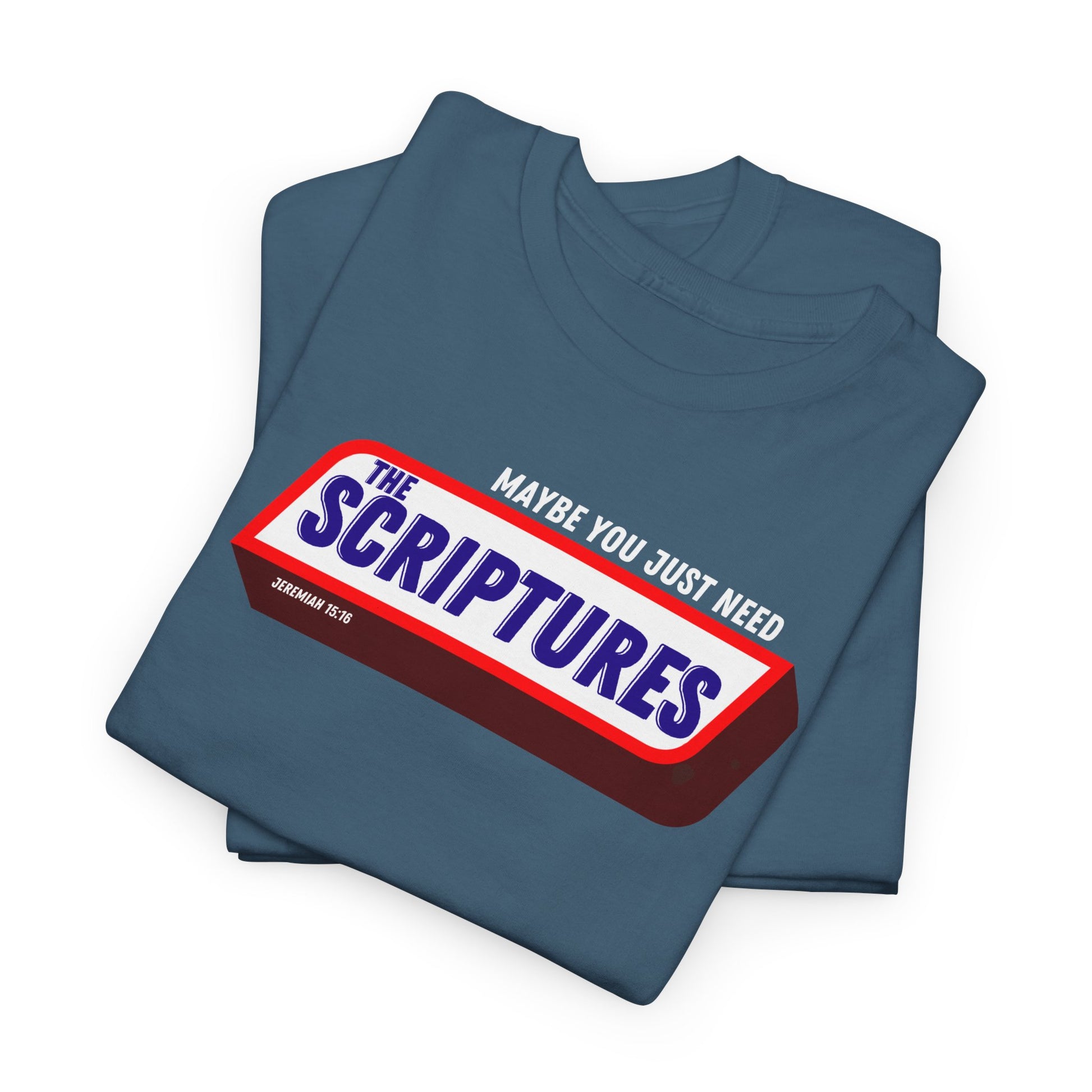 Scriptures Satisfy Heavy Cotton Tee Bible Humor