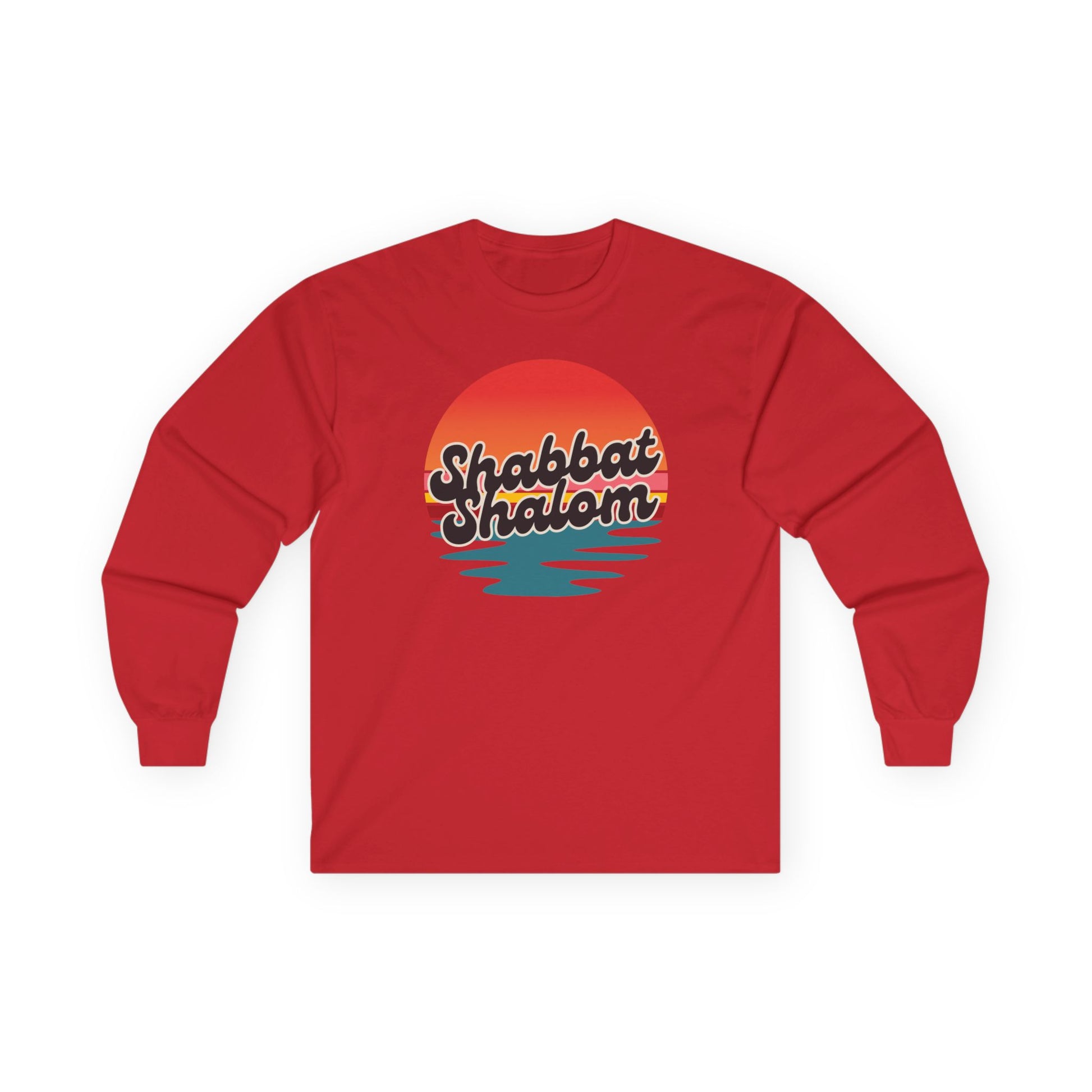 Soft, warm, and quietly nostalgic — this long sleeve tee carries a sunset-silhouette design that reads “Shabbat Shalom” across rippling water. The thicker, vintage-feel 100% cotton and tubular knit give it a lived-in comfort that settles easily into Shabbat routines: lighting candles, gathering around a table, and taking a good nap. The ribbed collar and taped shoulders hold shape through repeated wear, and the classic fit layers smoothly under a coat or over a tee when evenings turn cool. It’s made with mindful fabric choices and meets EU REACH standards, so it feels thoughtful in more ways than one.