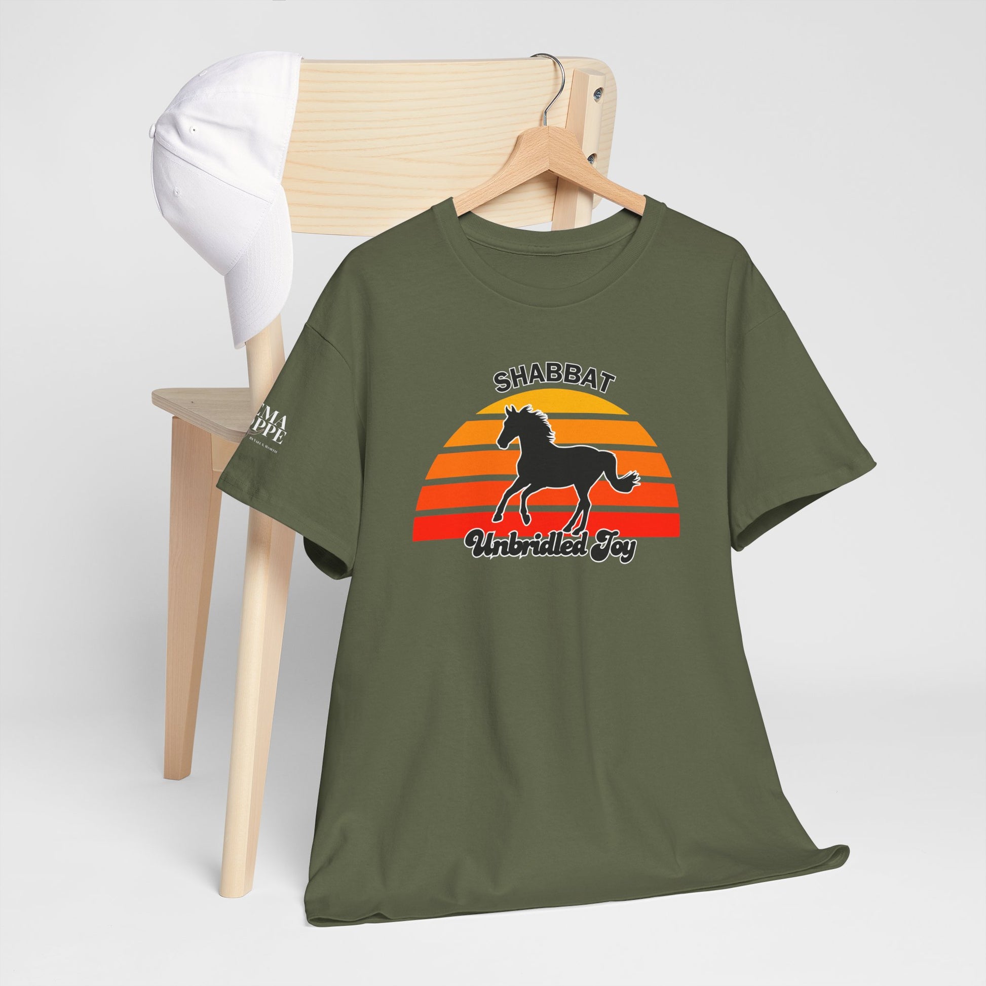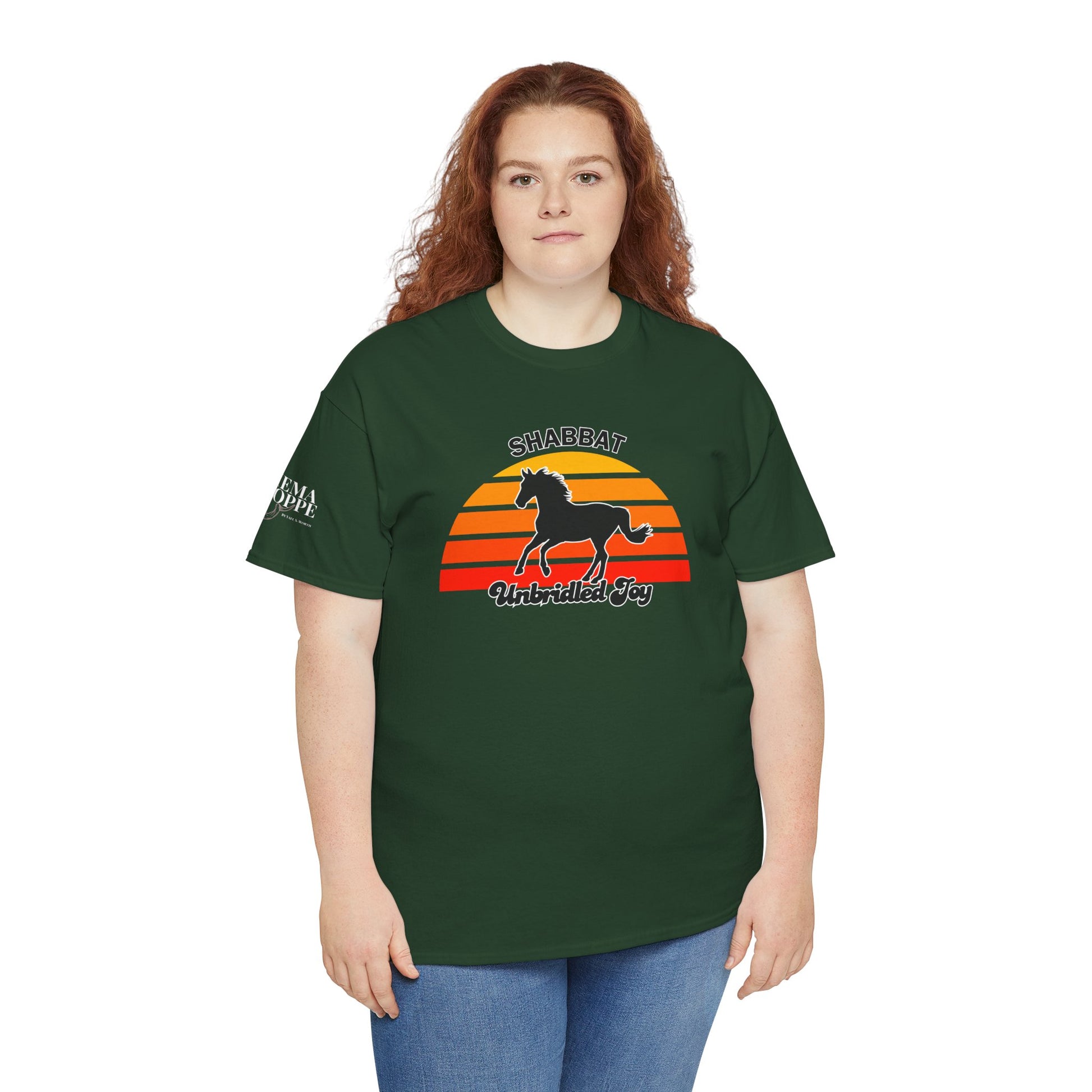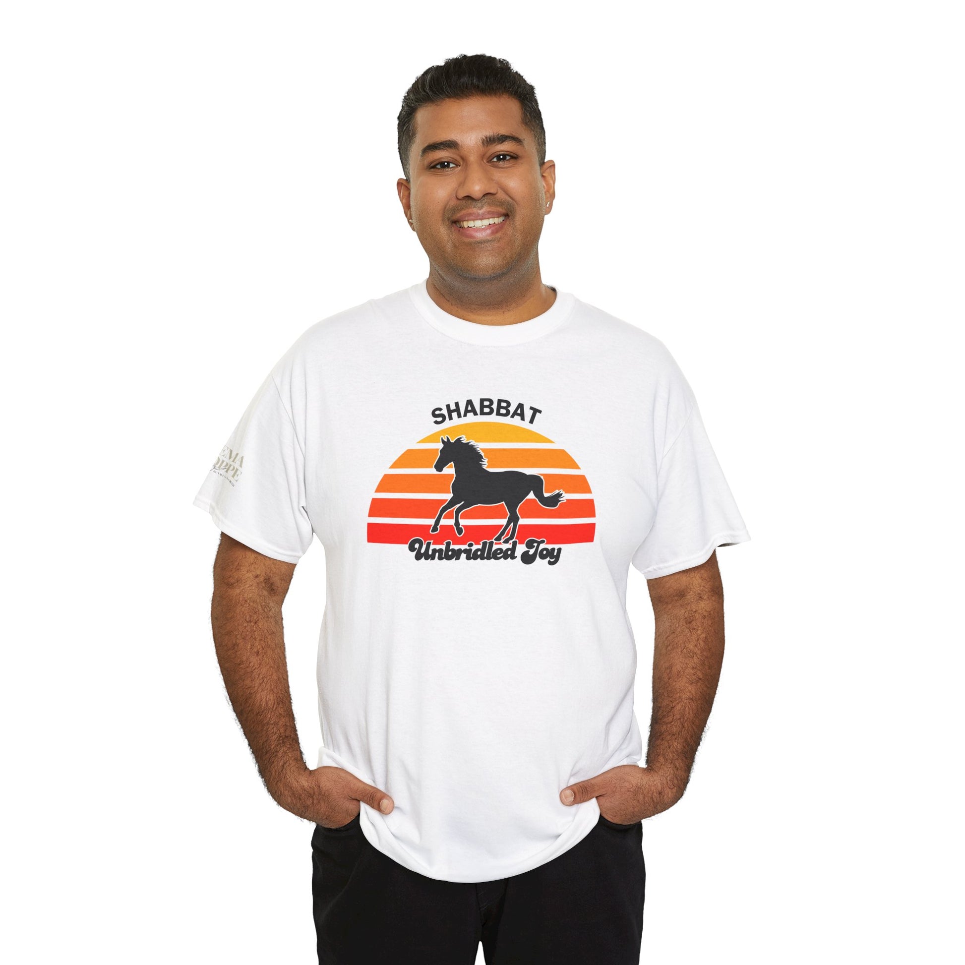 Shabbat Unbridled Joy Tee — Retro Horse Sabbath Sunset T‑Shirt