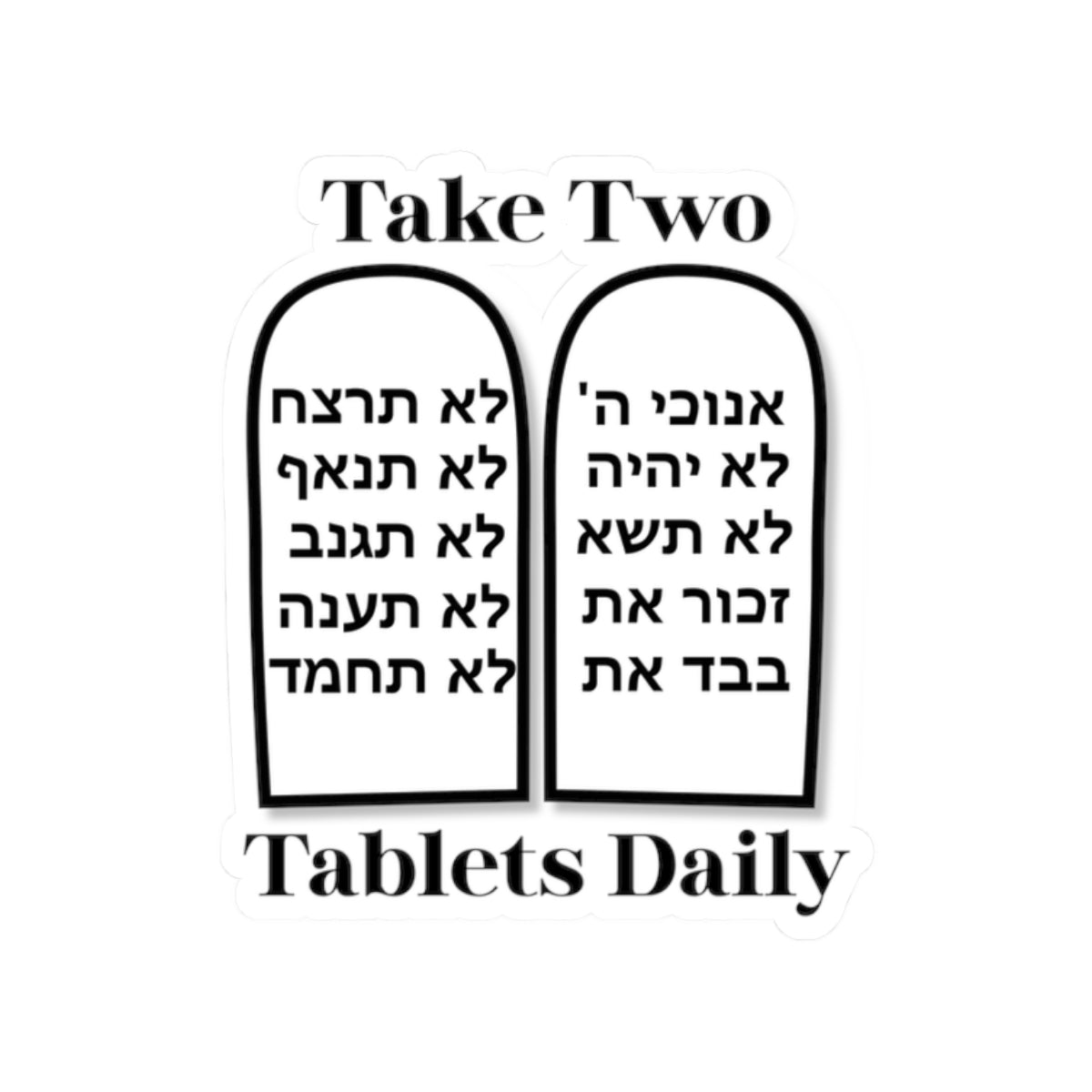 Take Two Tablets Daily- Funny Commandments Kiss-Cut Stickers, Humorous Laptop Decal, Gift for Believers, Feasts Decor, Faith-Based Gifts