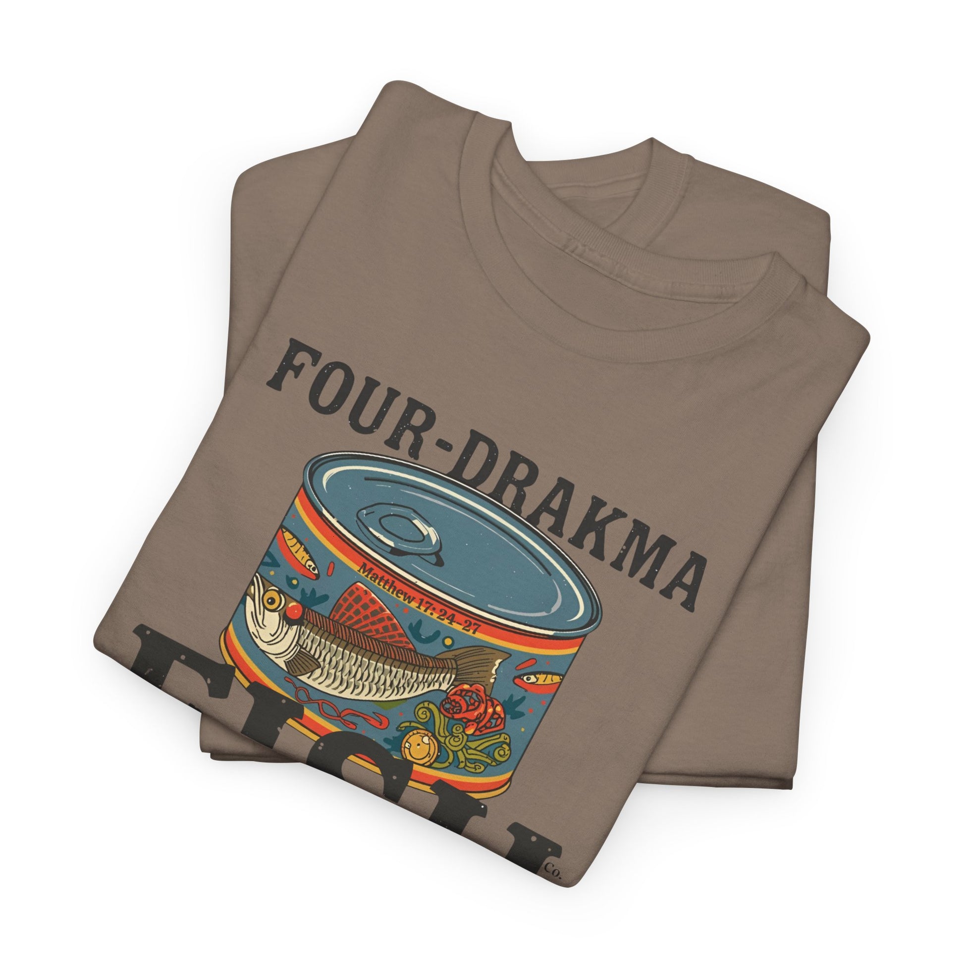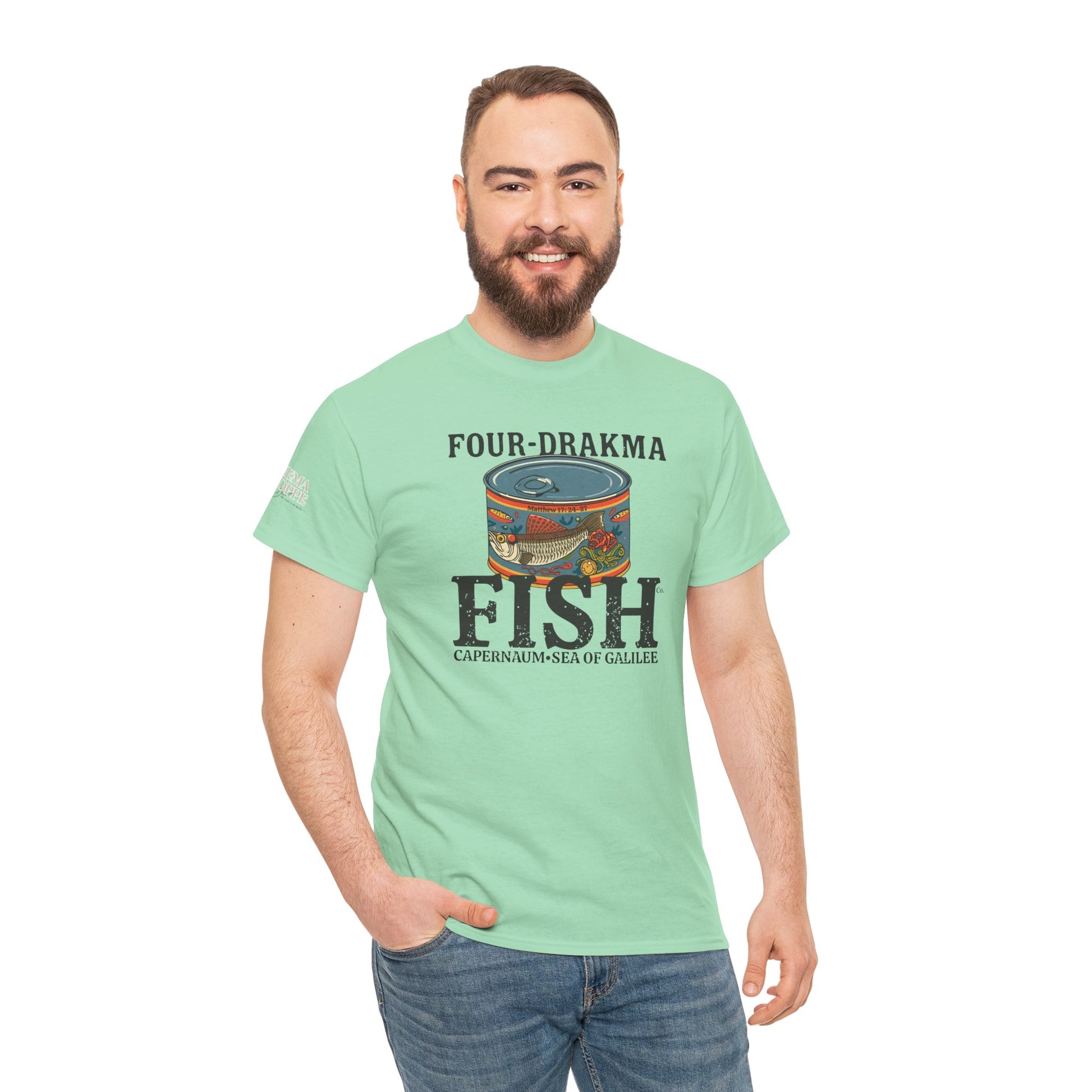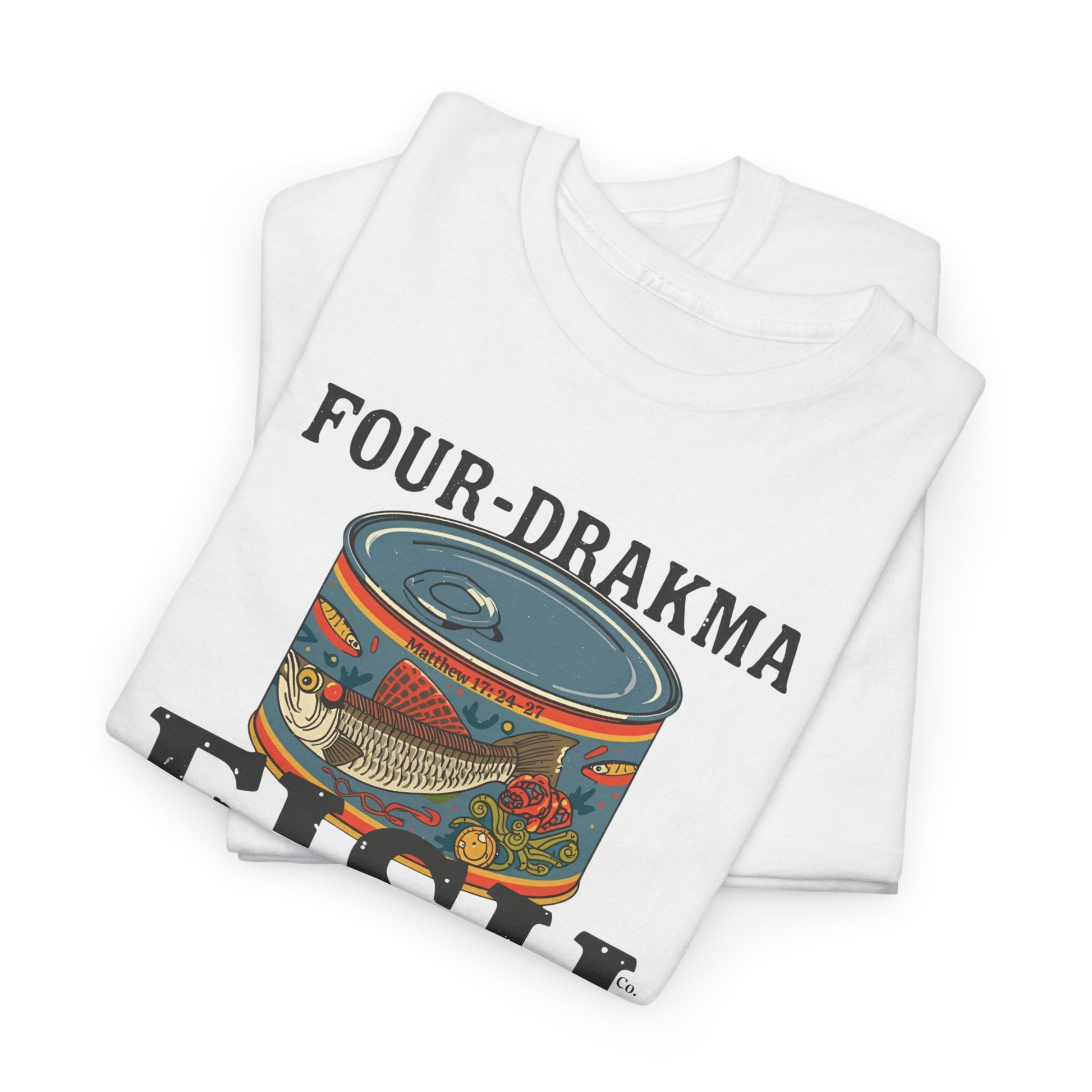 Vintage Four-Drachma Fish Co Matthew 17:24-27 Unisex Tee for Fishermen and Bible Enthusiasts
