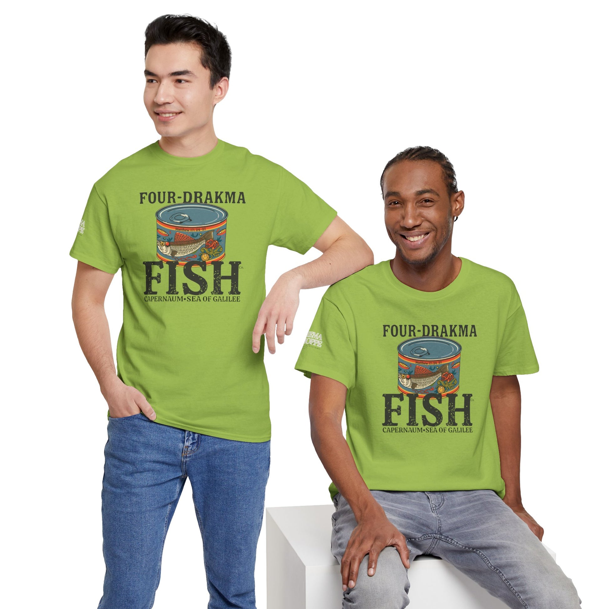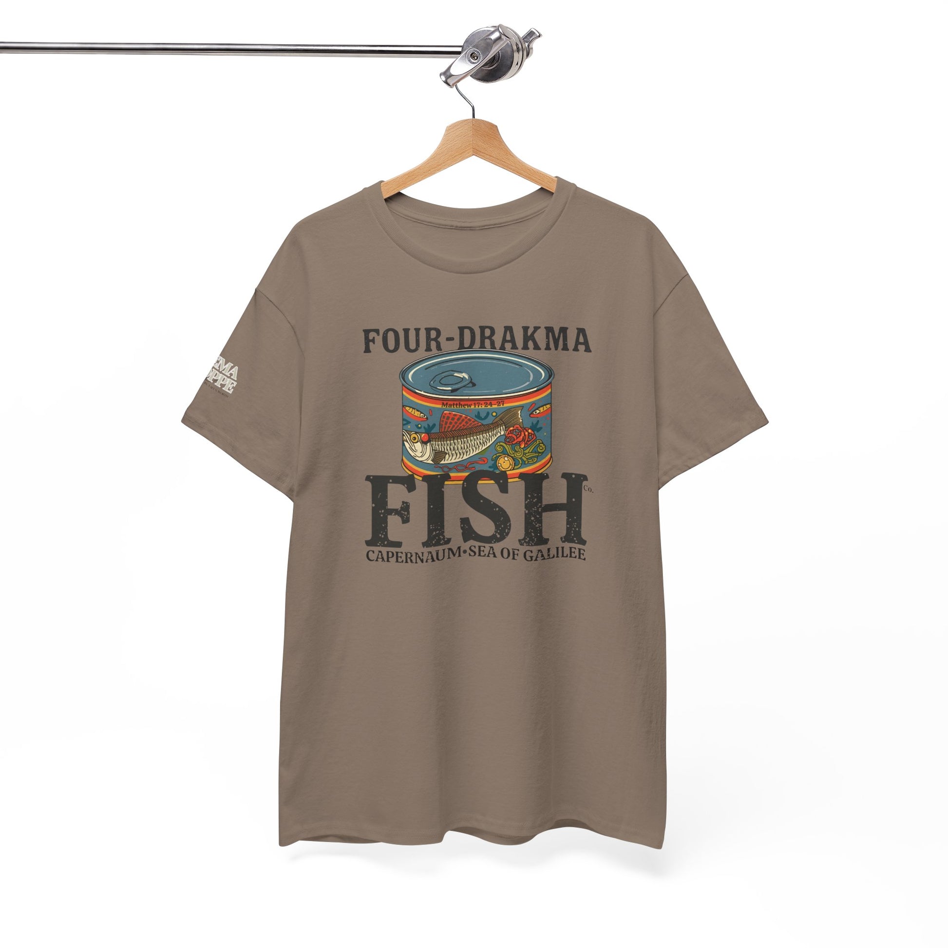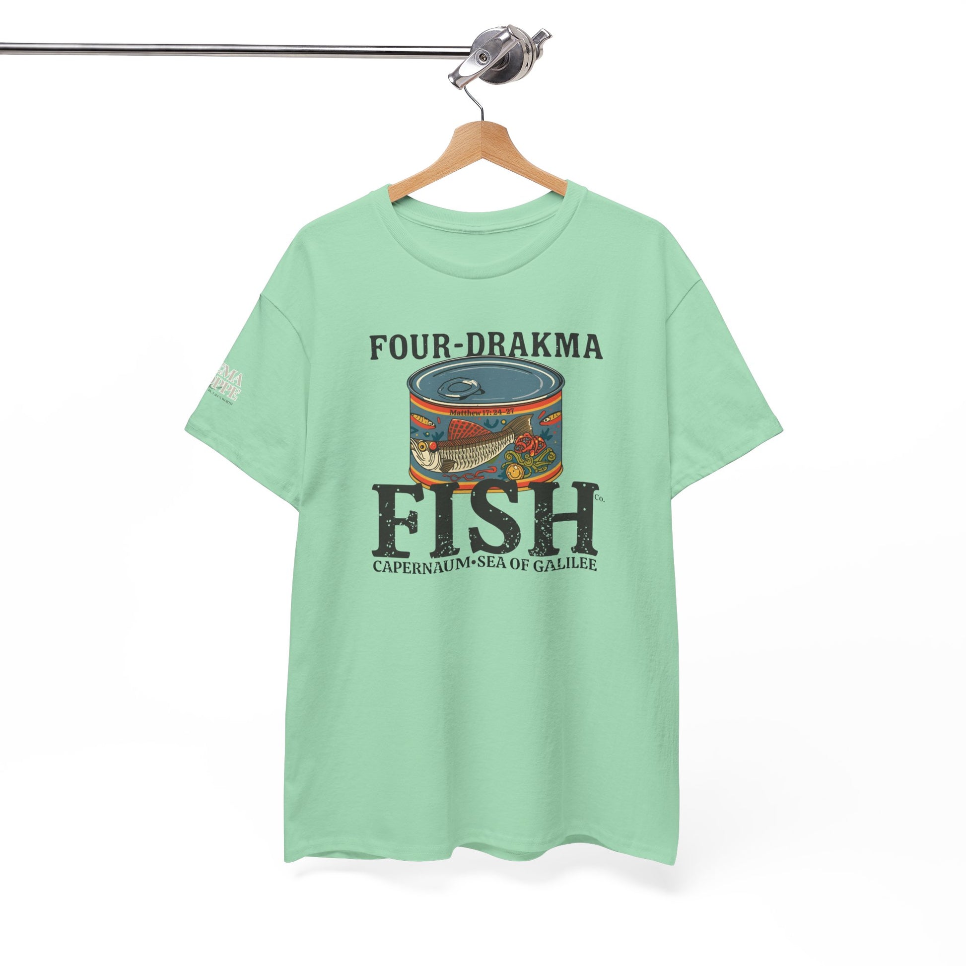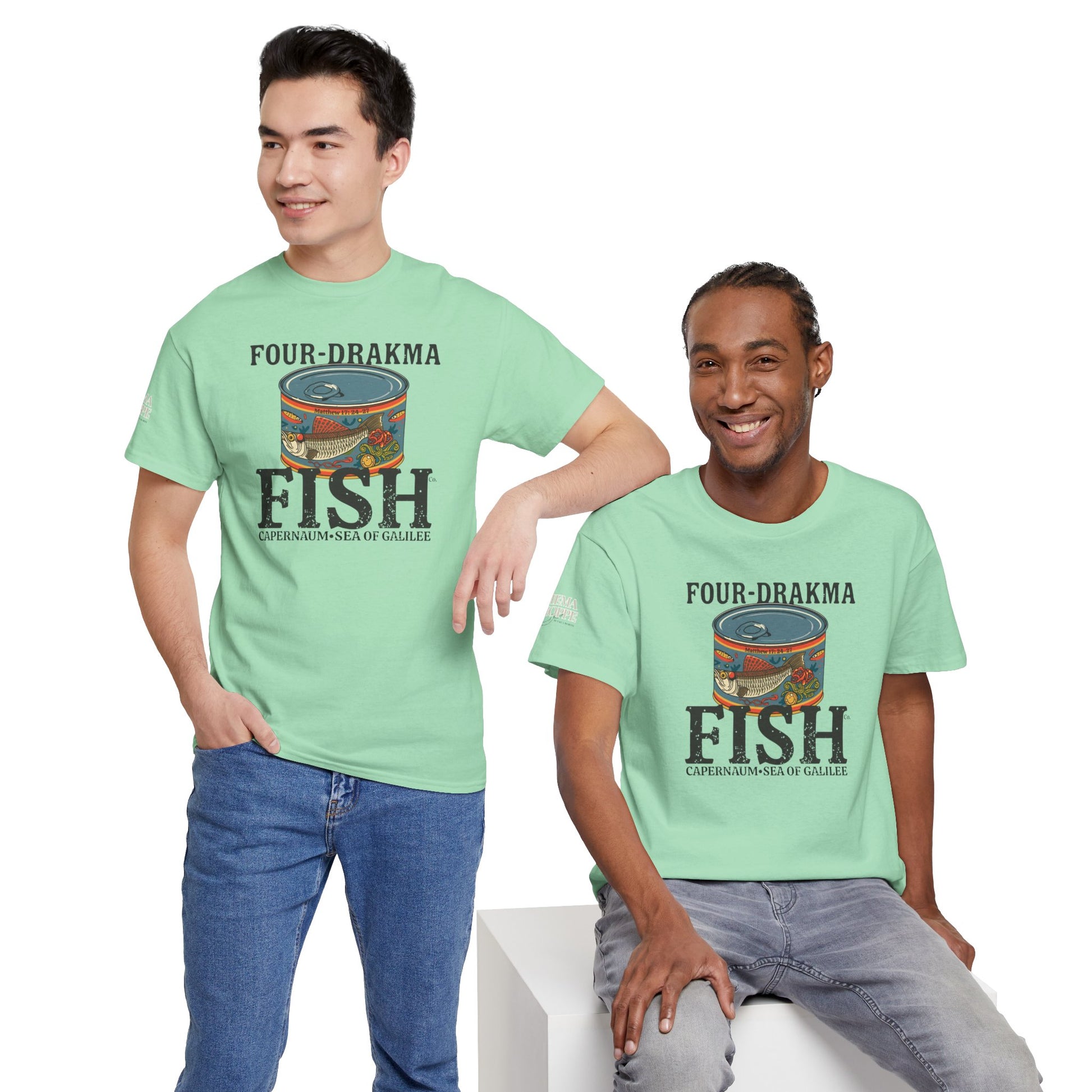 Vintage Four-Drachma Fish Co Matthew 17:24-27 Unisex Tee for Fishermen and Bible Enthusiasts